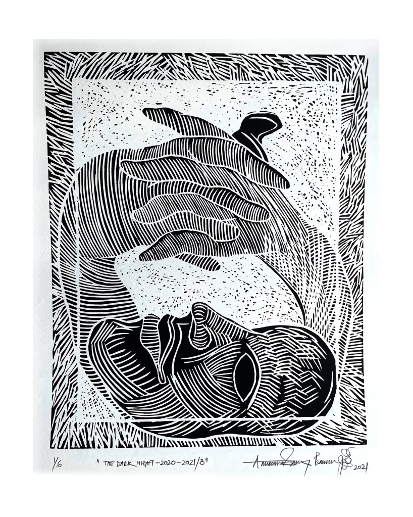 Anand Moy Bannerji, ‘The dark night’, linocut, 2020-2021/A