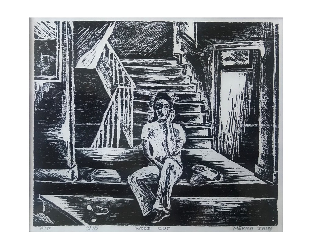 Nandini Bagla Chirimar, ‘Within four walls’, moku-Hanga, 15” x 12”