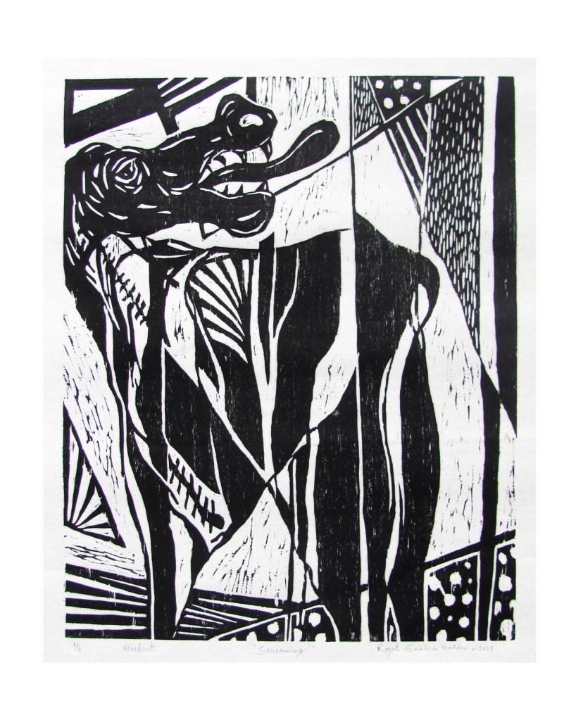 Rajat Subhar Halder, ‘Screaming’, woodcut, 15” x 12”