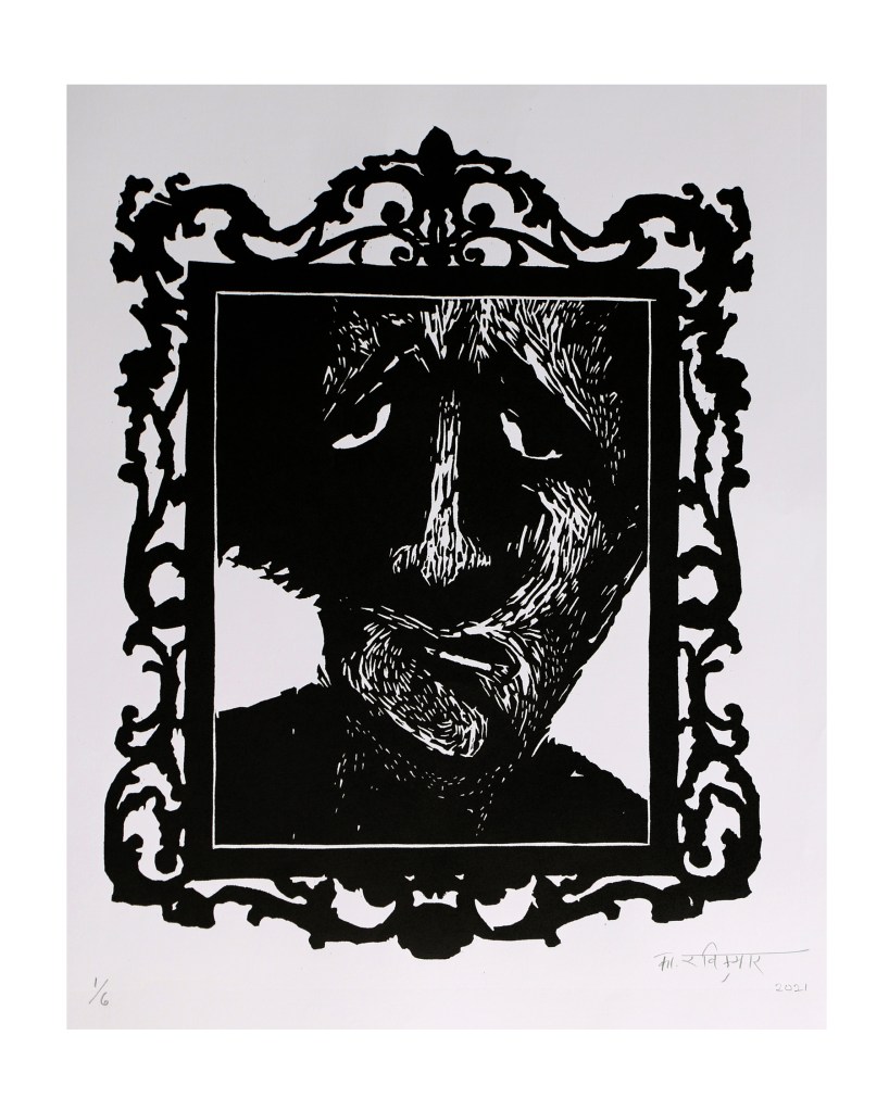 Ravikumar Kashi, ‘Aaina pehli si surat mange’, woodcut, 15” x 12”