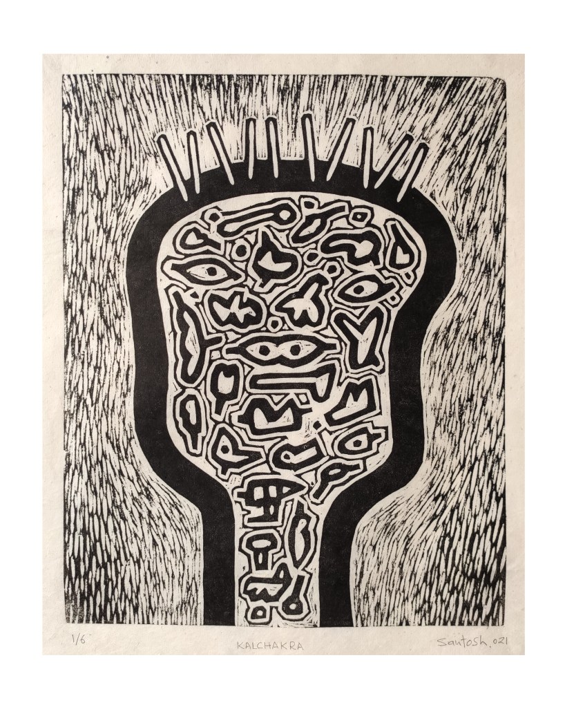 Santosh Kumar Verma, ‘Kalchakra’, woodcut, 12” x 15”