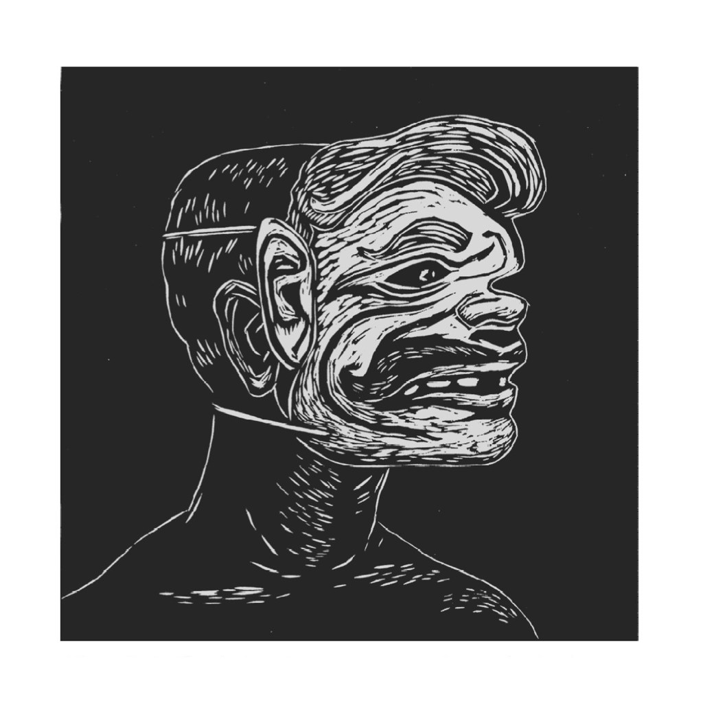 Soura Chatterjee, ‘Wear a mask to save your identity’, linocut, 12” x 12”
