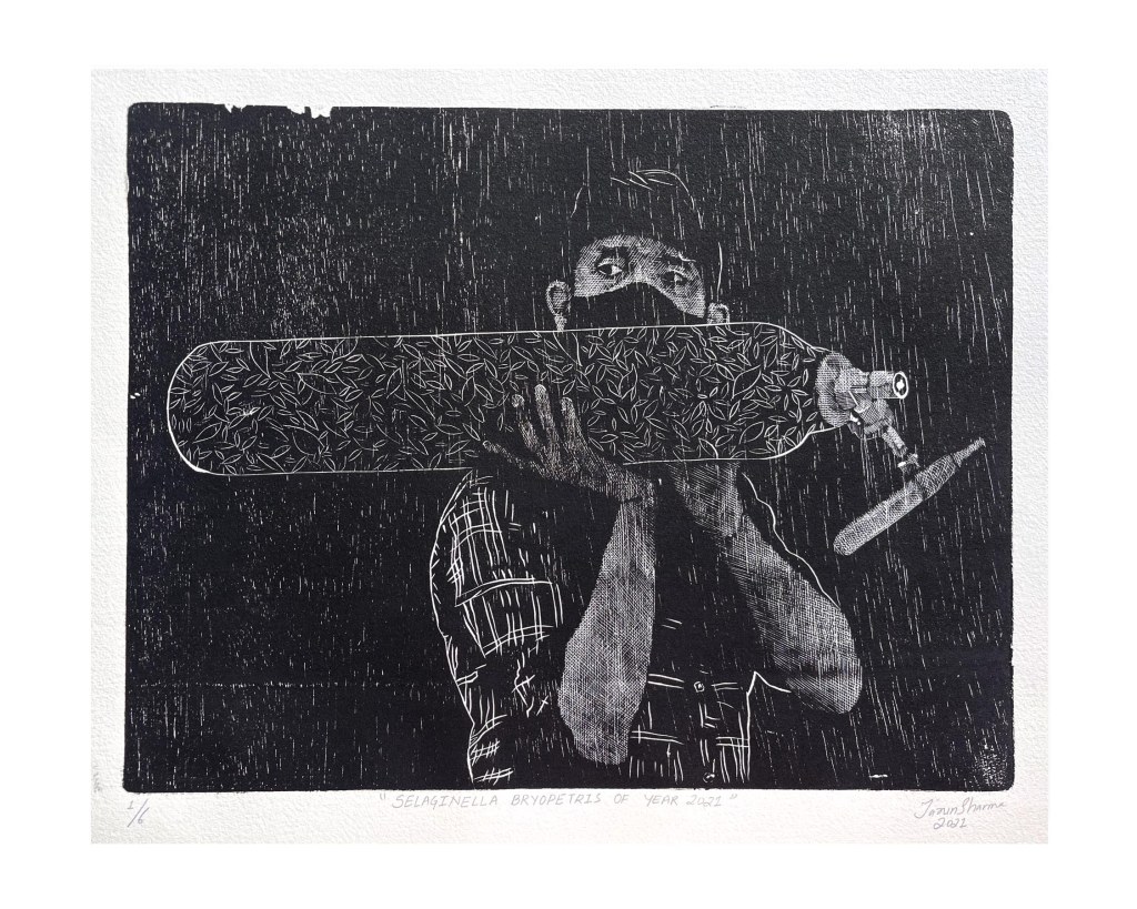 Tarun Sharma, ‘Selaginella bryopteris of year 2021’, woodcut, 12” x 15”