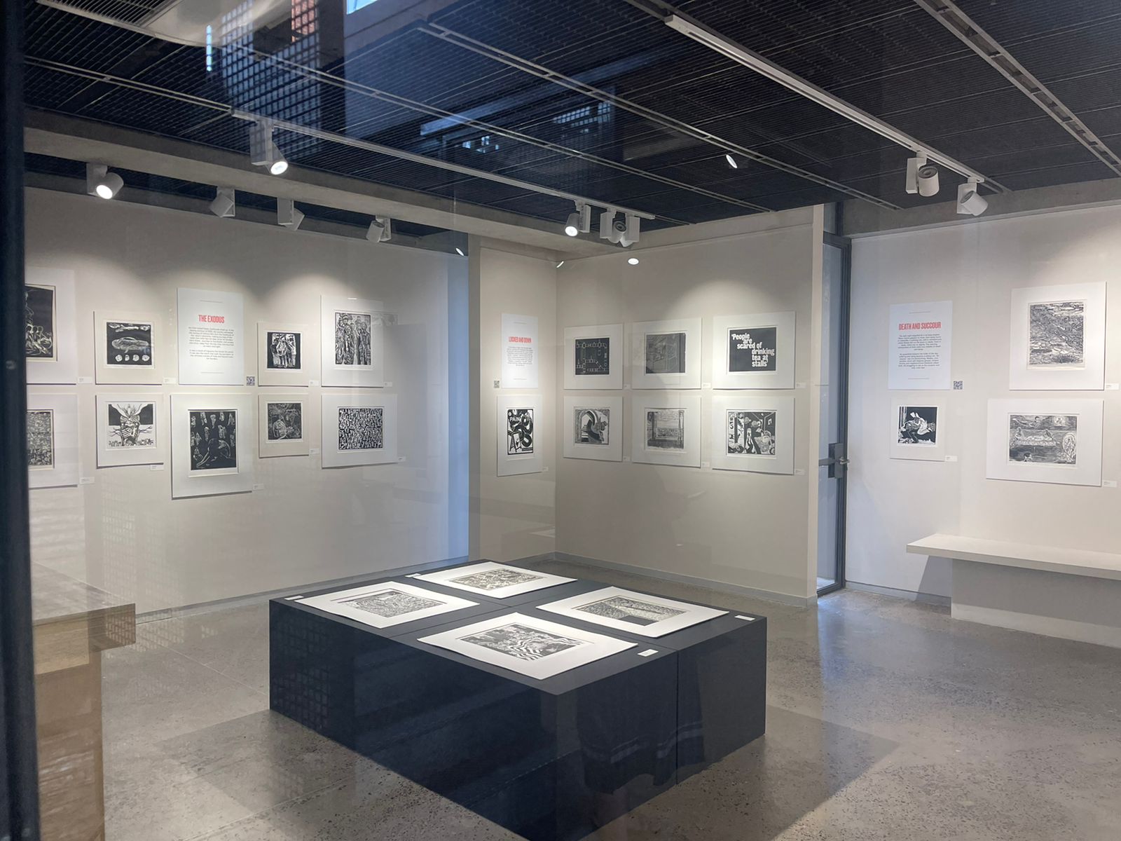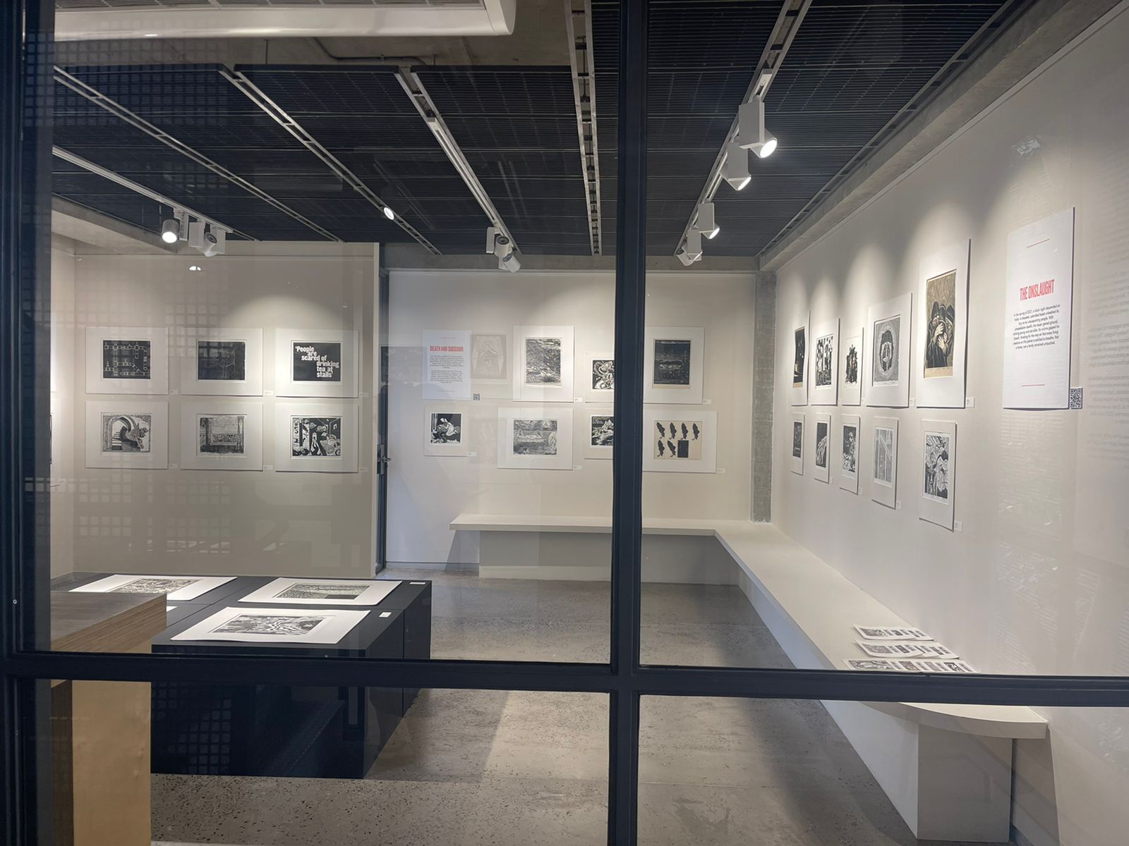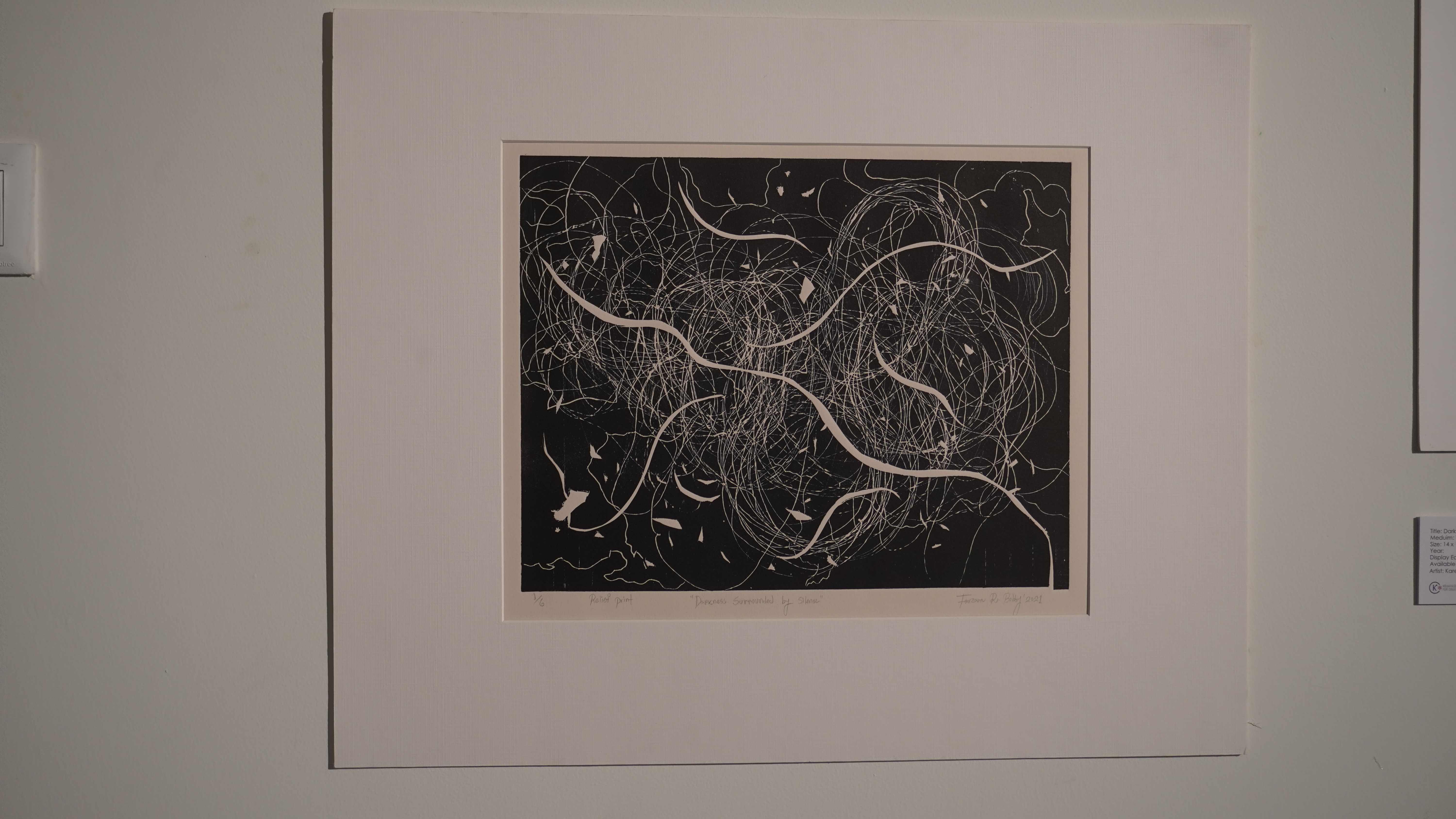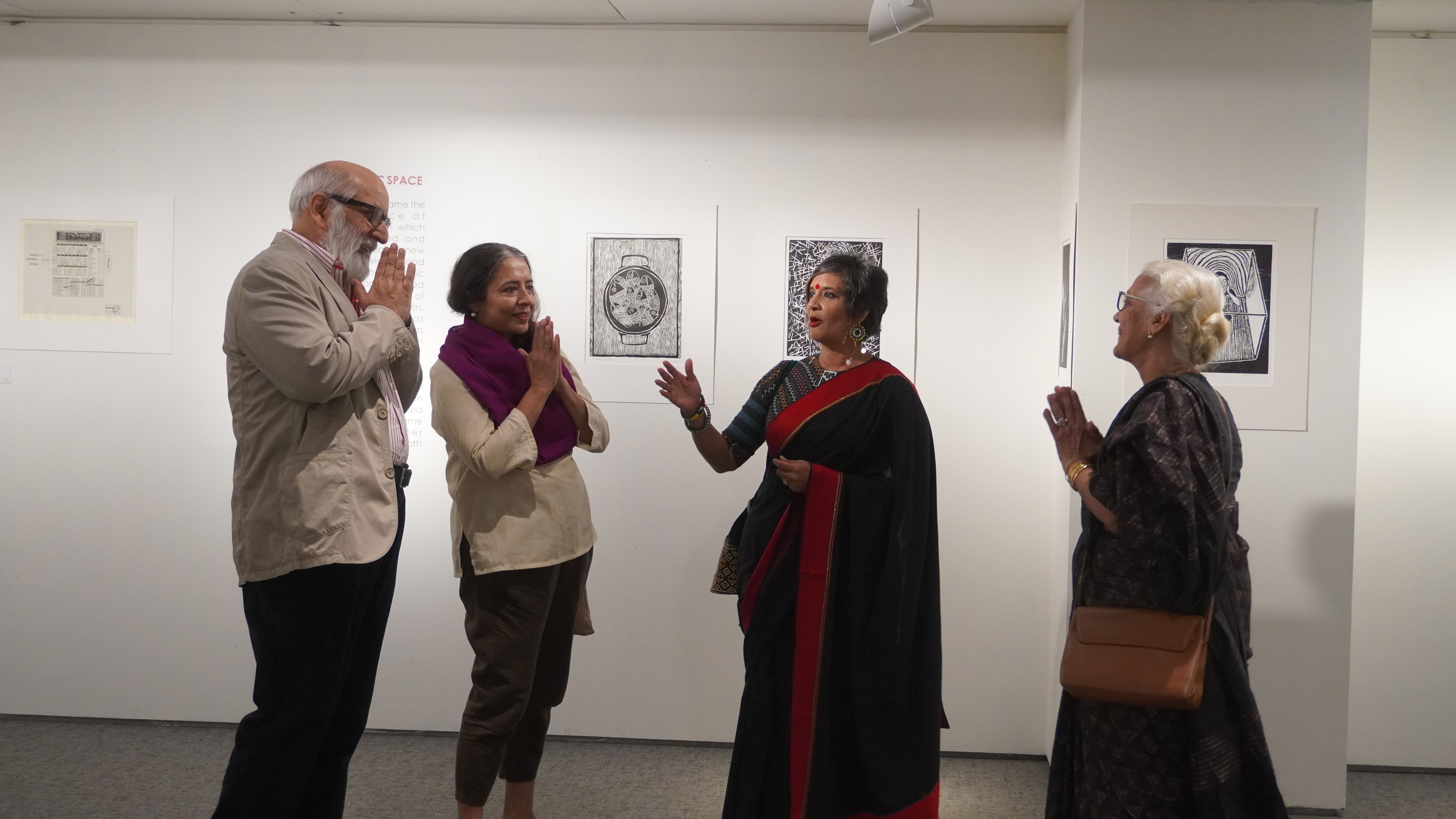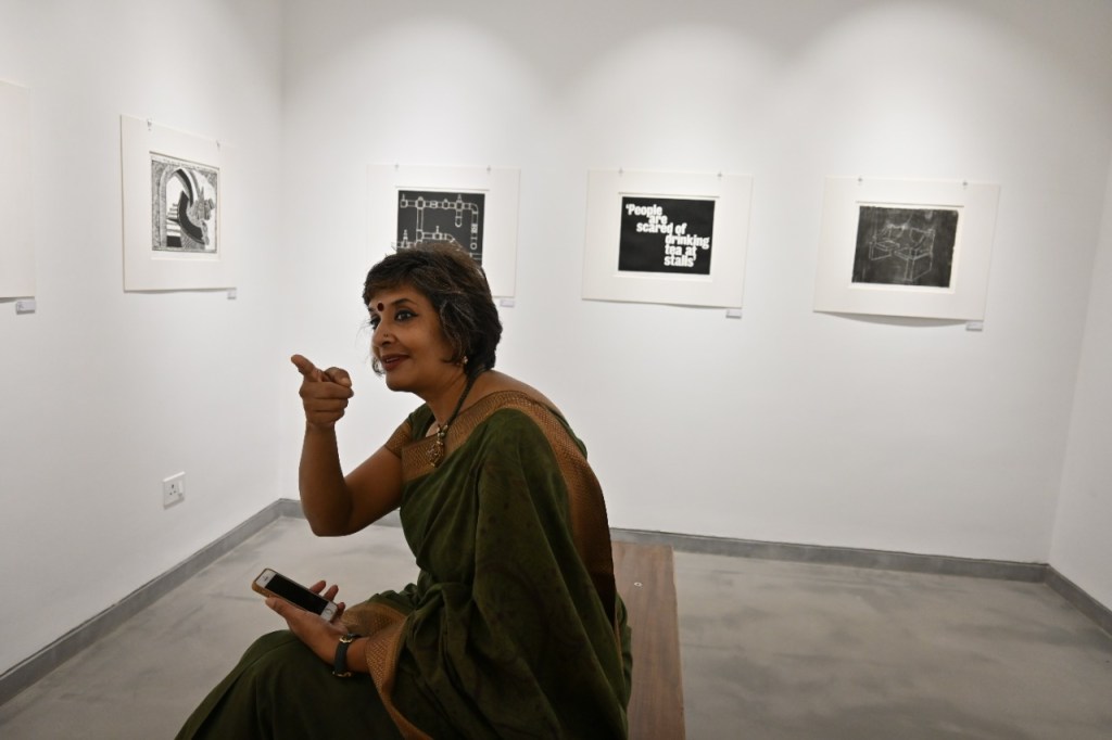 A selection of about 80 prints was displayed at Arthshila Ahmedabad. The exhibition opened with a guided walkthrough by Leenika Jacob, Co-founder, Kala Chaupal Trust and Avni Bansal, an artist and Curatorial Assistant to the project. The opening was attended by renowned printmakers of Ahmedabad and by architecture students of CEPT and Nirma University. It was a very enriching and inspiring experience for the architecture students to go through the black and white relief prints. The prints resonated with their pandemic experiences and led them to unfold their thoughts whilst viewing the exhibition.