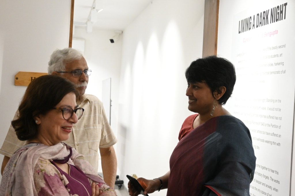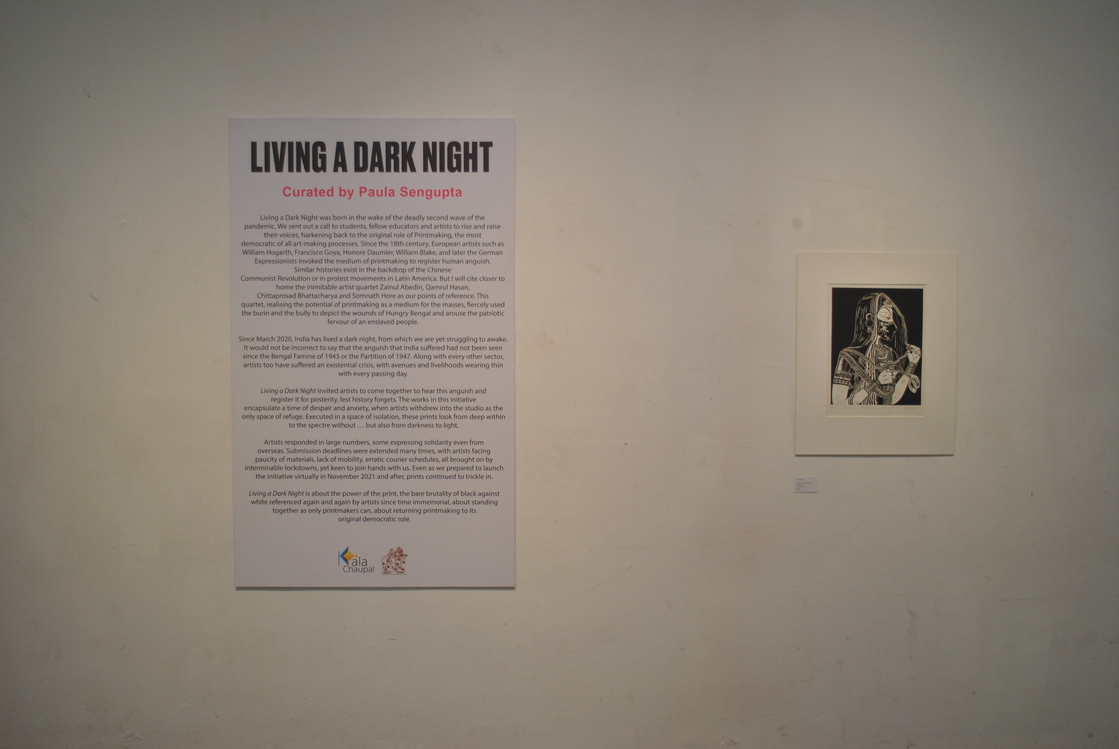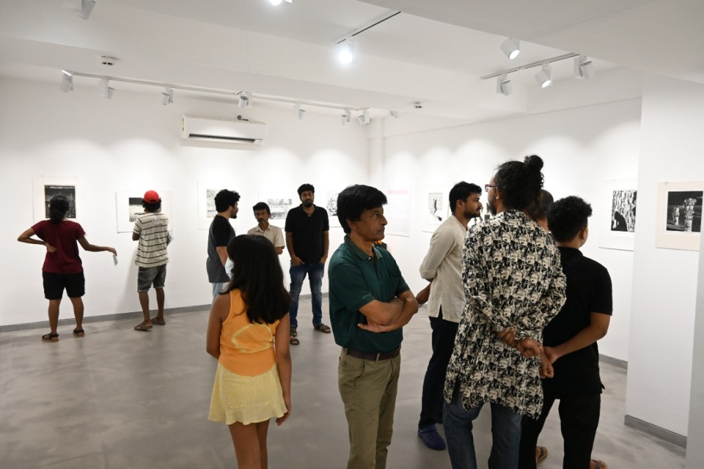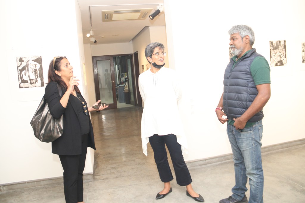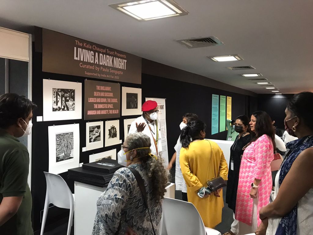 The fifth iteration of Living a Dark Night opens at the Maharaja Sayajirao University of Baroda in collaboration with the historic ‘Chhaap’ Foundation for Printmaking Trust. The exhibition was inaugurated in the presence of teachers and students from the Fine Art Faculty and eminent printmakers Padma Shri Jyoti Bhatt, Bijoy Baggodi, and many others. The exhibition was displayed for 3 days and was well attended by the fine arts students from MSU and other universities.