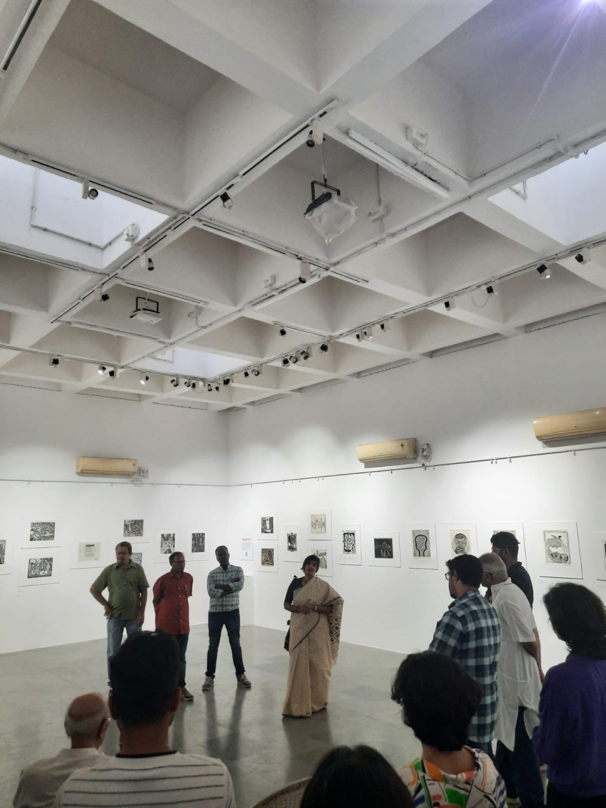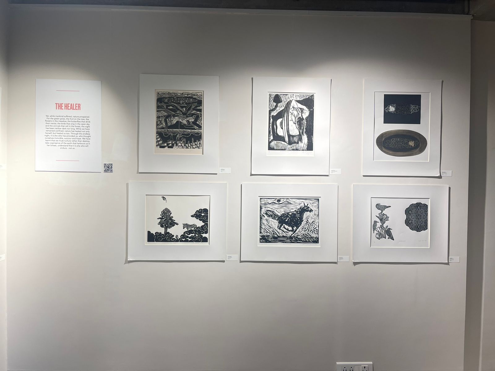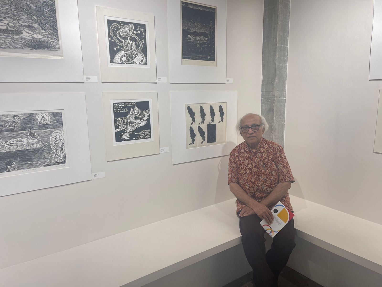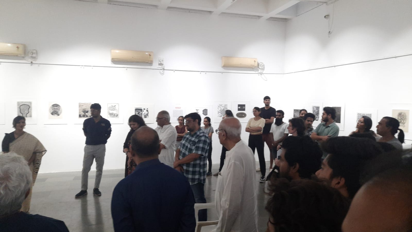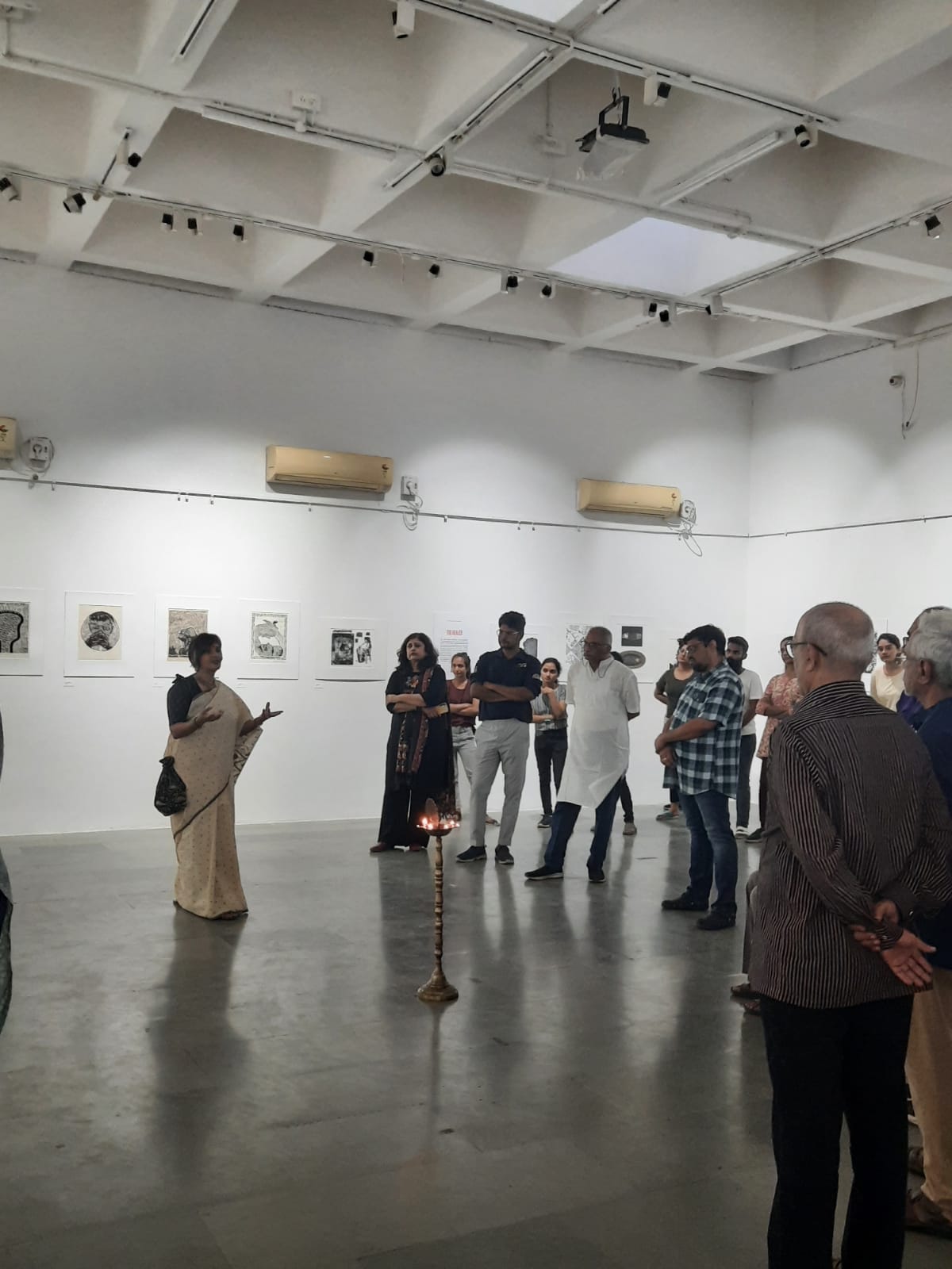 We were excited to showcase this large body of black and white relief prints at the birthplace of modern Indian printmaking, Santiniketan. The exhibition opened at Arthshila Santiniketan. The opening was well attended by faculty members and students from Kala Bhavana,Visva Bharati, as well as other members of the Santiniketan community. People were delighted to see such a large body of prints. Many also commented that the exhibition showcased several works of considerable merit. Some visitors were so moved that they shared their own COVID stories, as at other iterations of the exhibition. Our curator, Dr. Paula Sengupta, also gave a small introductory talk and guided people through the project website.