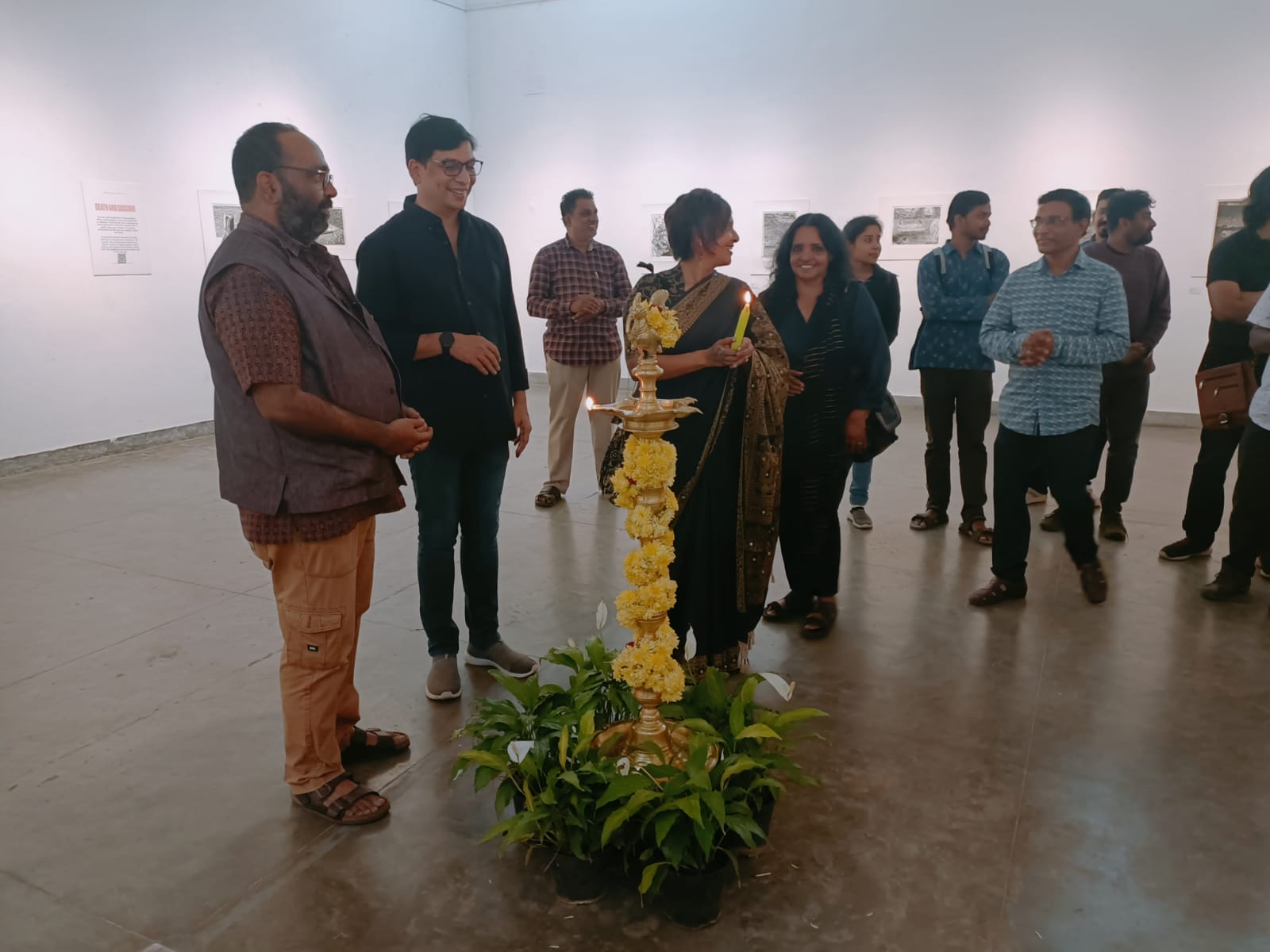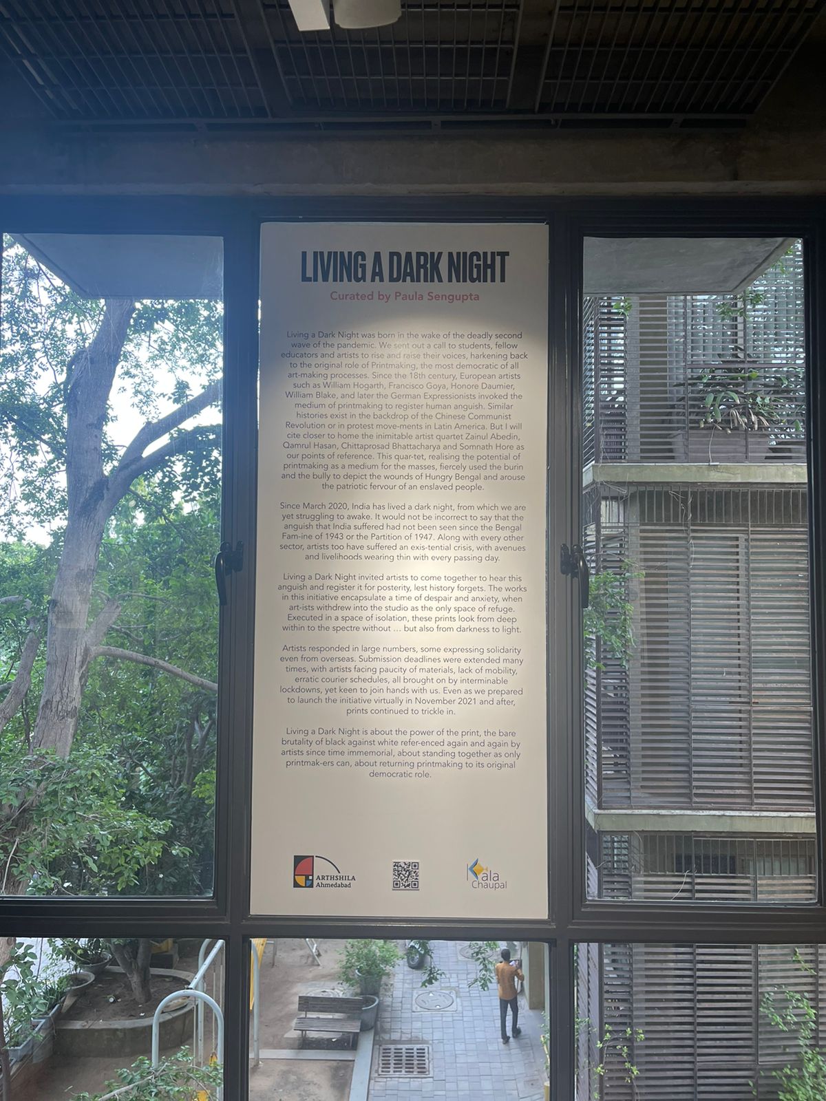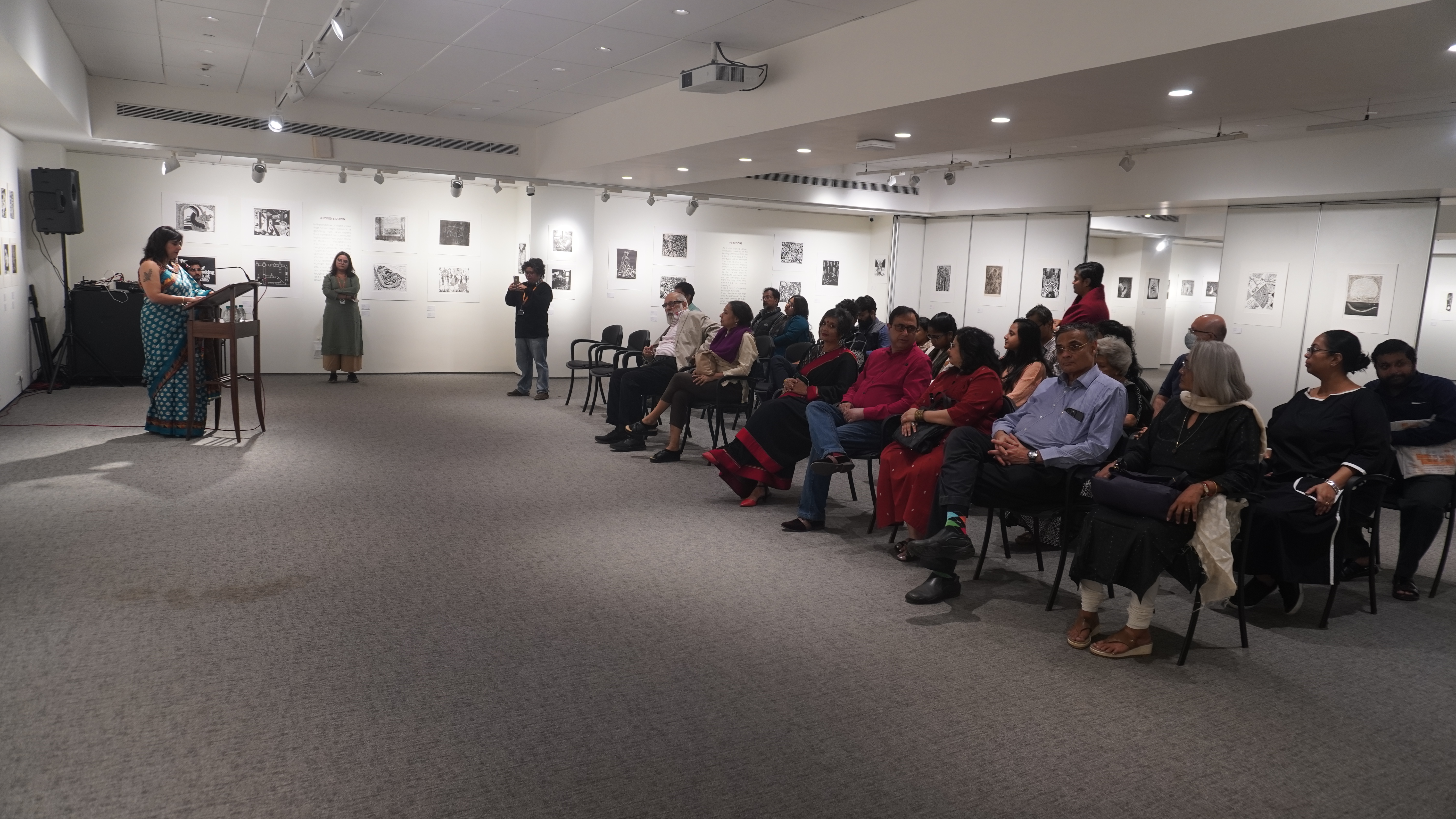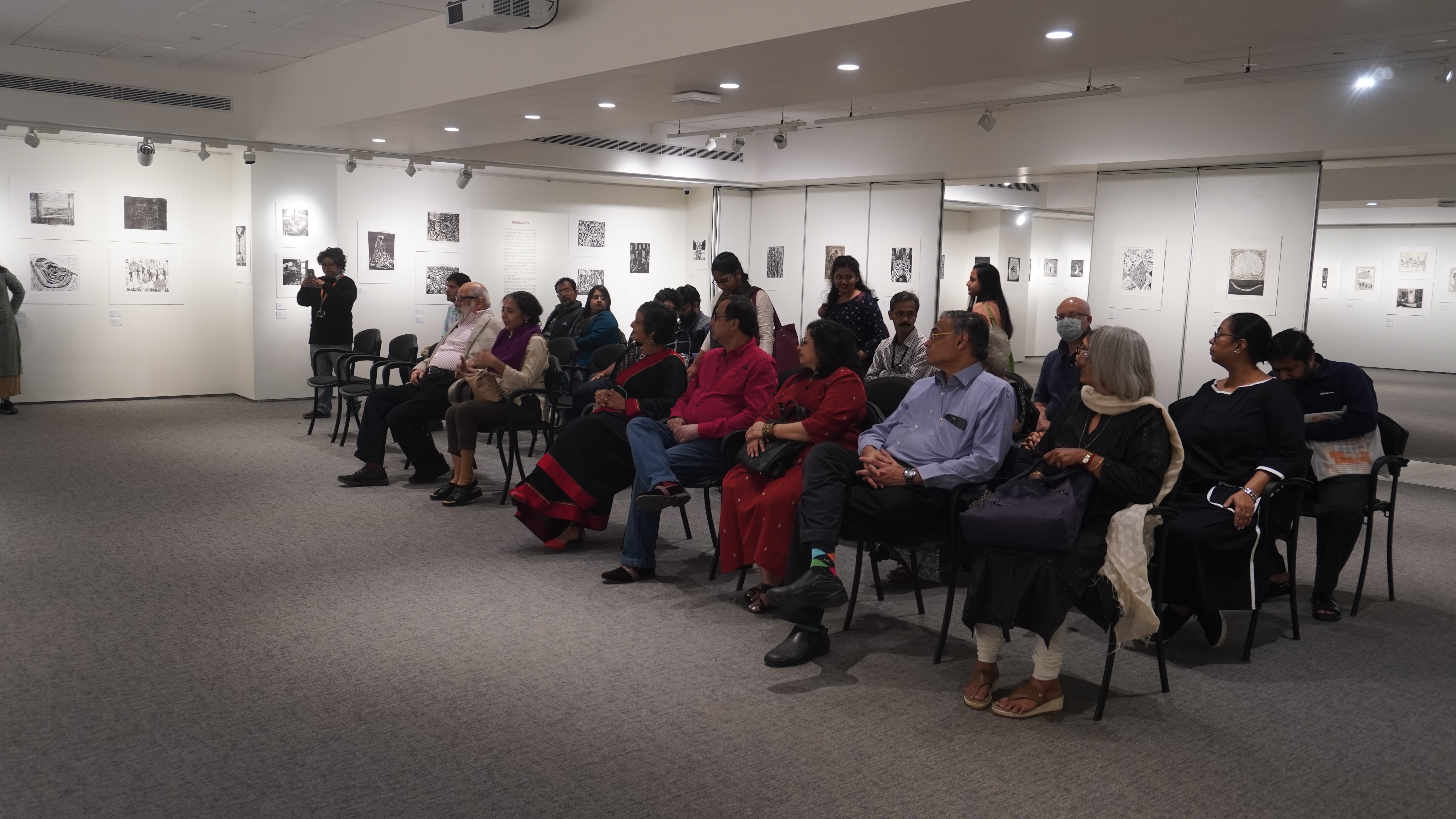 We were excited to showcase this large body of black and white relief prints at the birthplace of modern Indian printmaking, Santiniketan. The exhibition opened at Arthshila Santiniketan. The opening was well attended by faculty members and students from Kala Bhavana,Visva Bharati, as well as other members of the Santiniketan community. People were delighted to see such a large body of prints. Many also commented that the exhibition showcased several works of considerable merit. Some visitors were so moved that they shared their own COVID stories, as at other iterations of the exhibition. Our curator, Dr. Paula Sengupta, also gave a small introductory talk and guided people through the project website.