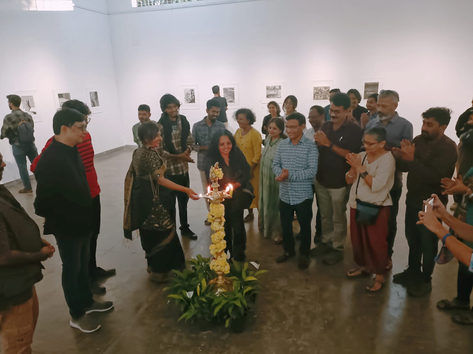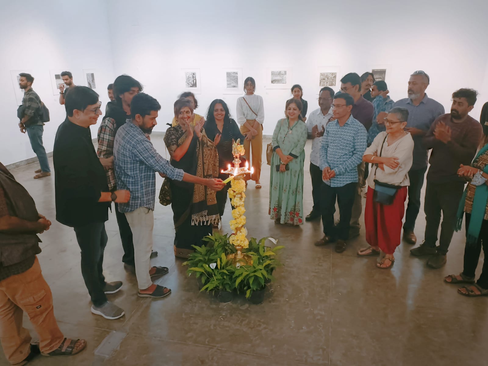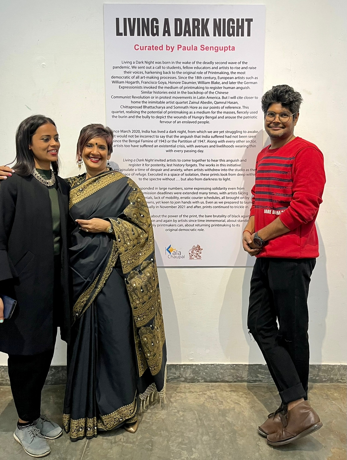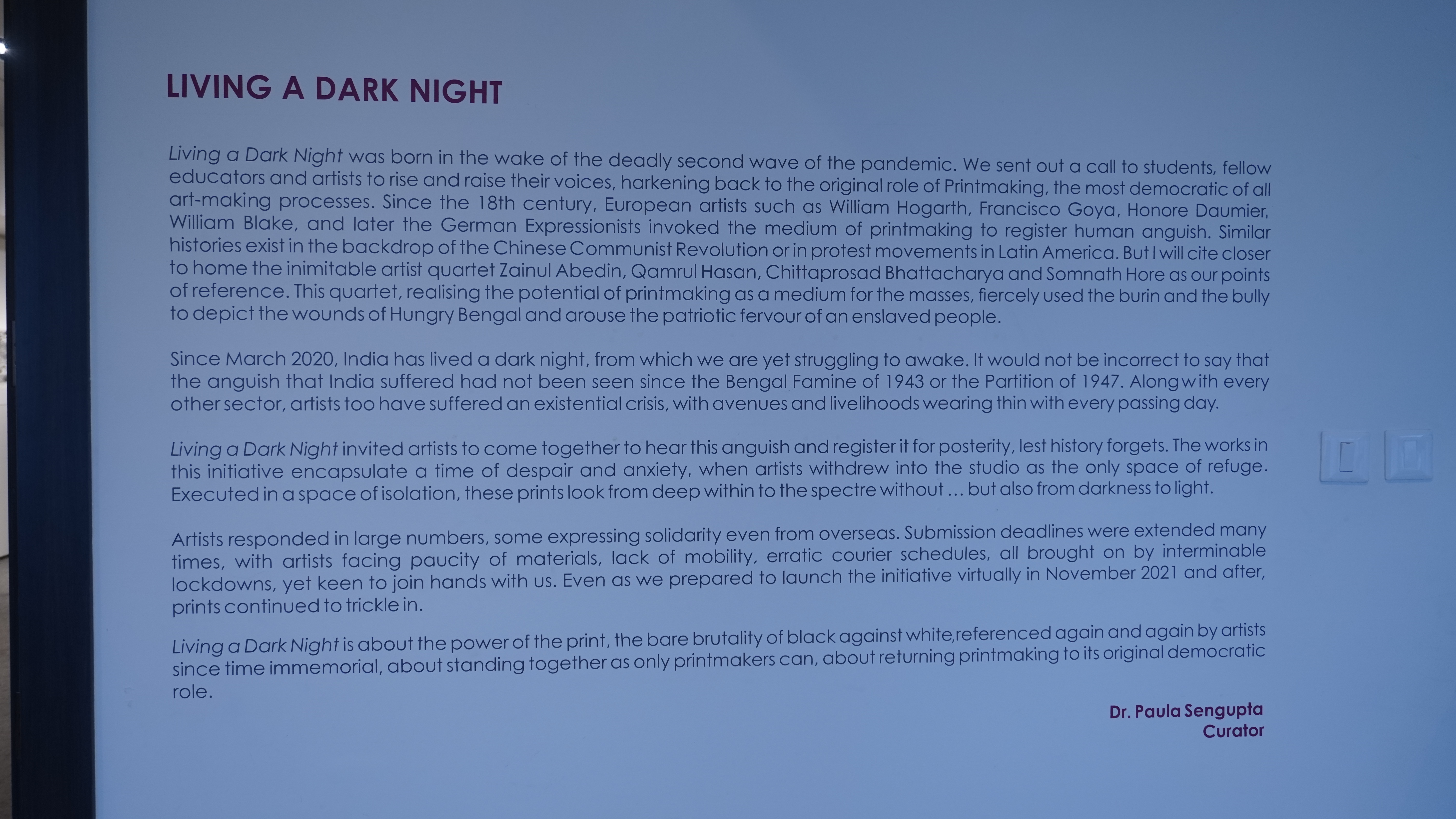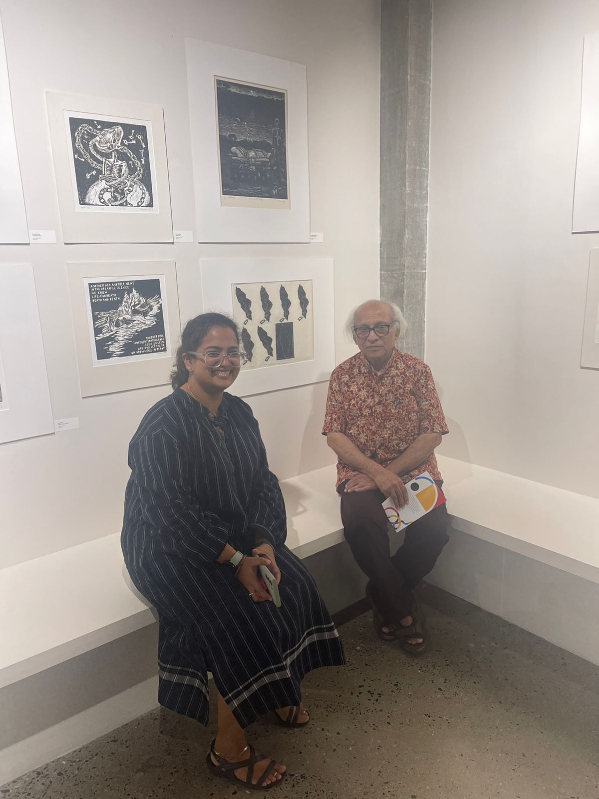 We were excited to showcase this large body of black and white relief prints at the birthplace of modern Indian printmaking, Santiniketan. The exhibition opened at Arthshila Santiniketan. The opening was well attended by faculty members and students from Kala Bhavana,Visva Bharati, as well as other members of the Santiniketan community. People were delighted to see such a large body of prints. Many also commented that the exhibition showcased several works of considerable merit. Some visitors were so moved that they shared their own COVID stories, as at other iterations of the exhibition. Our curator, Dr. Paula Sengupta, also gave a small introductory talk and guided people through the project website.