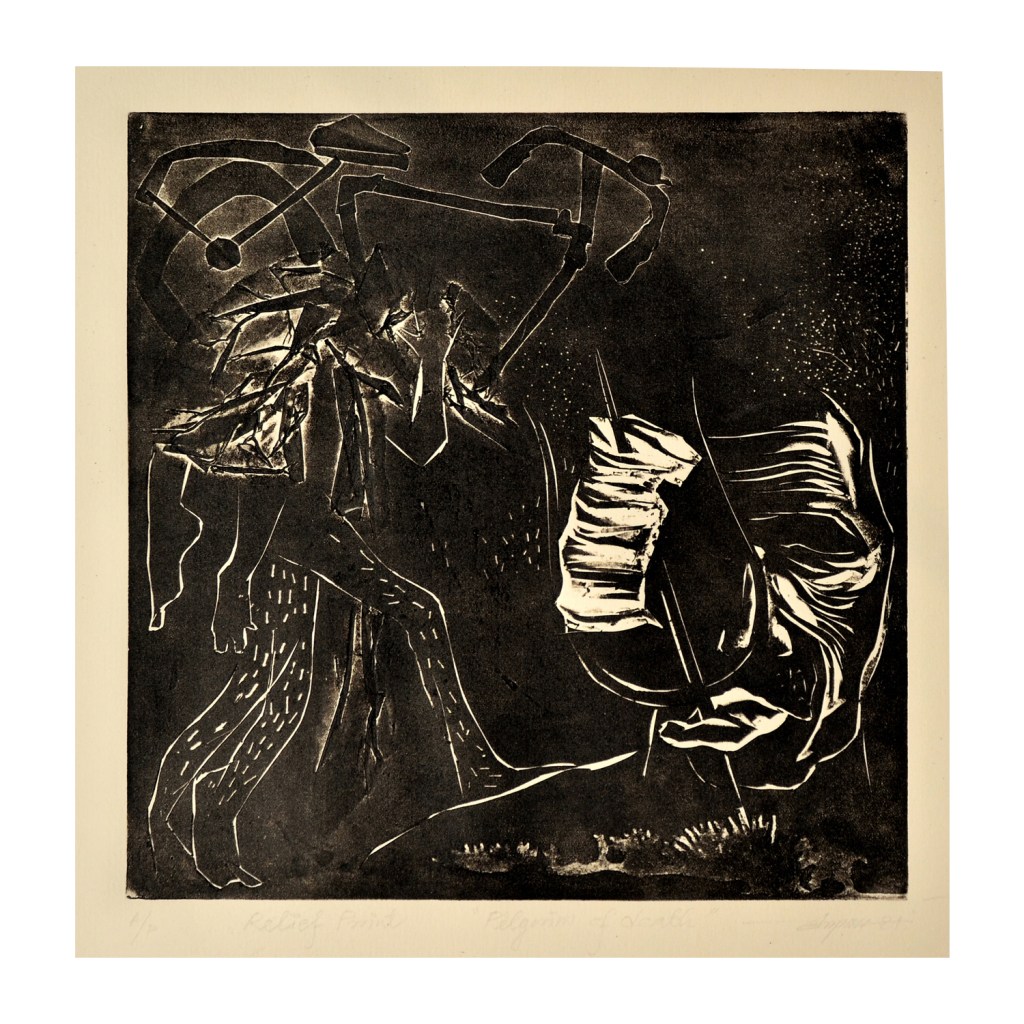 Arpan Sadhukhan, ‘Pilgrim of death’, woodcut, 12” x 12”