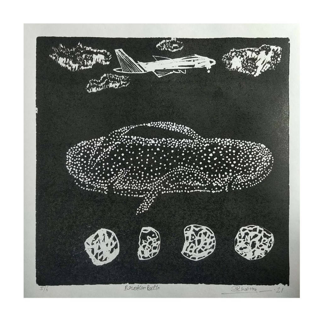 Preeti Singh, ‘Discontinous Continuity’, woodcut, 15” x 12”