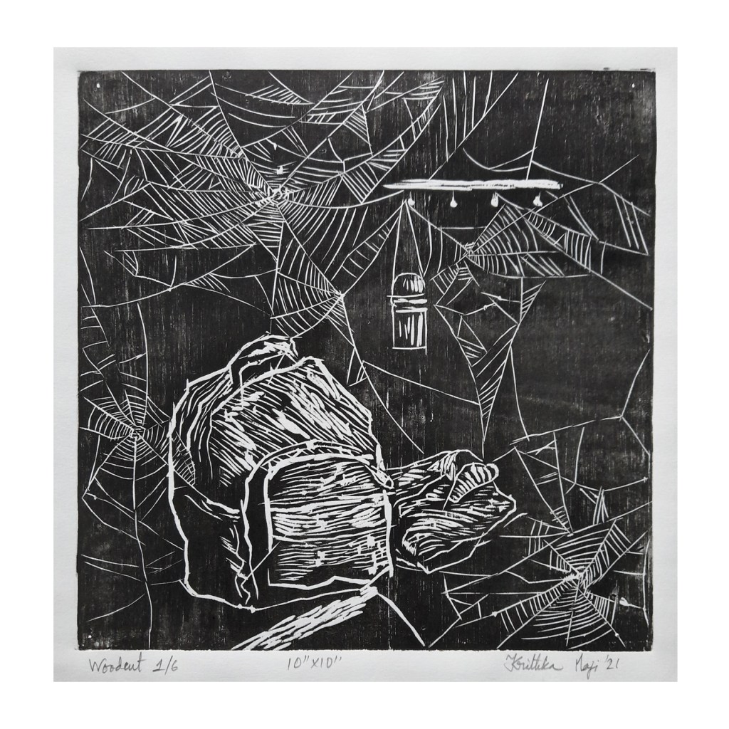 Krittika Maji, ‘The Darkest Tomorrow’, woodcut, 12” x 12”